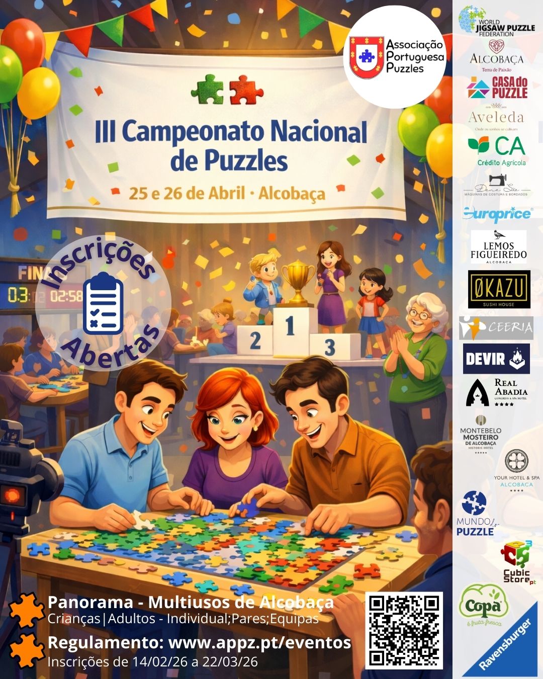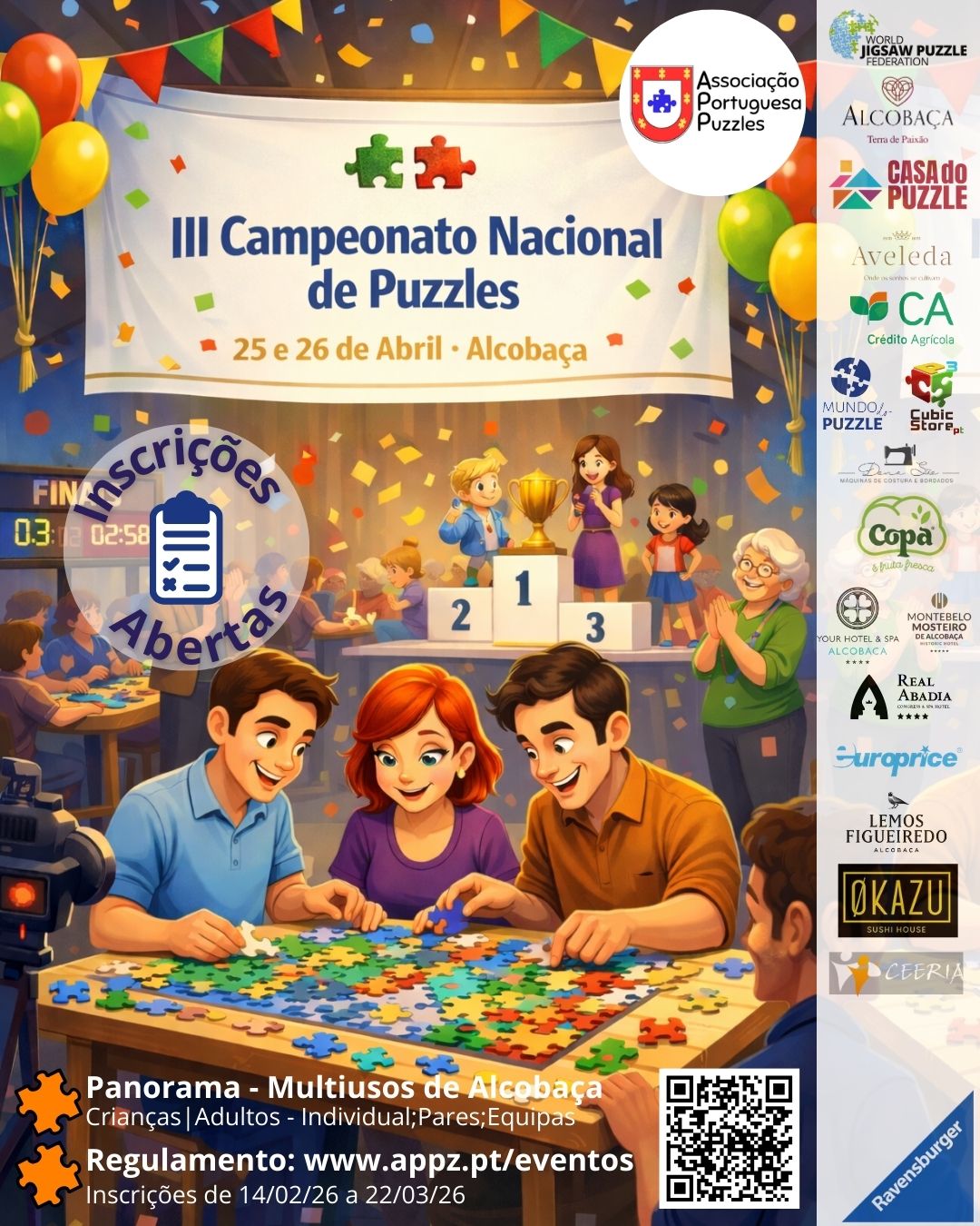 Parceiros: APPZ; Ravensburguer; Mundo do Puzzle